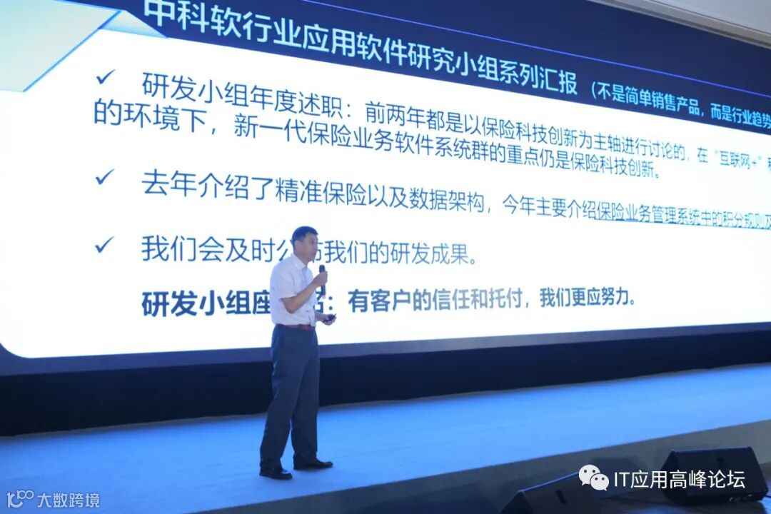 上午主题报告的压轴演讲嘉宾是来自主办方中科软的董事长左春先生,左总以“保险业务参考模型中的积分规则及其原理”为题,分享了他对保险业务线上渠道和线下渠道互动融合,优化线上全流程服务的核心能力的深入思考,认为保险线上业务模型,特别是其中蕴含的积分规则及原理,是相关能力提升的核心支撑点。