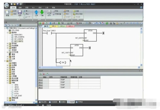 定时中断可以用来进行一个周期性的操作,以1毫秒为增量,周期时间可以取1毫秒至255毫秒。定时中断0和定时中断1的时间间隔分别写入特殊寄存器字节SMB34和SMB35。通常可以使用定时中断来采集模拟量或定时执行PID控制程序。定时器中断T32和T96允许及时响应一个给定时间间隔的结束,只有1毫秒分辨率的接通延时TON和断开延时TOF定时器,T32和T96支持此类中断,启用中断后当定时器的当前值等于预设值时,在CPU的1毫秒定时刷新中执行被连接的中断程序。