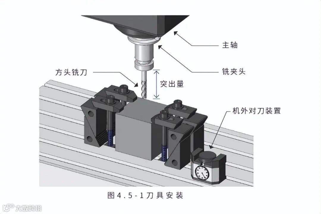 该顶端位置的测量也称为“测量长度”。用于测量长度的是一种图 4.5-2 所示的名为“机外对刀装置”的工具。此外还有多种测量长度的方法,例如用块规代替机外对刀装置。公众号:solidworks非标机械设计