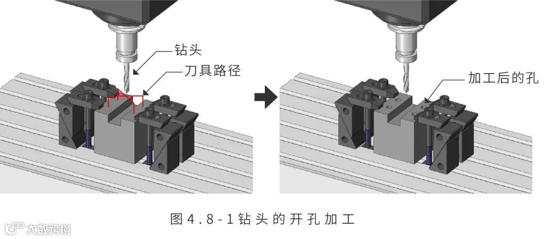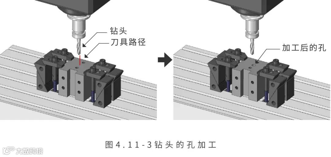 接下来创建开孔加工用程序。钻头开孔有一个名为钻头循环的独特指令。程序完成后,启动它并开始开孔加工。