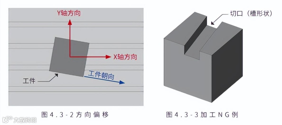 当然,由于主轴以轴向为基准移动,因此如图 4.3-3 所示,会相对于工件形成斜槽,从而导致 NG。