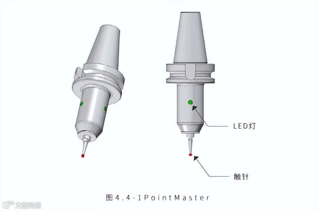 PointMaster是一种安装在主轴上的工具,当移动主轴使触针顶端与工件接触时,LED灯点亮,通知接触。
