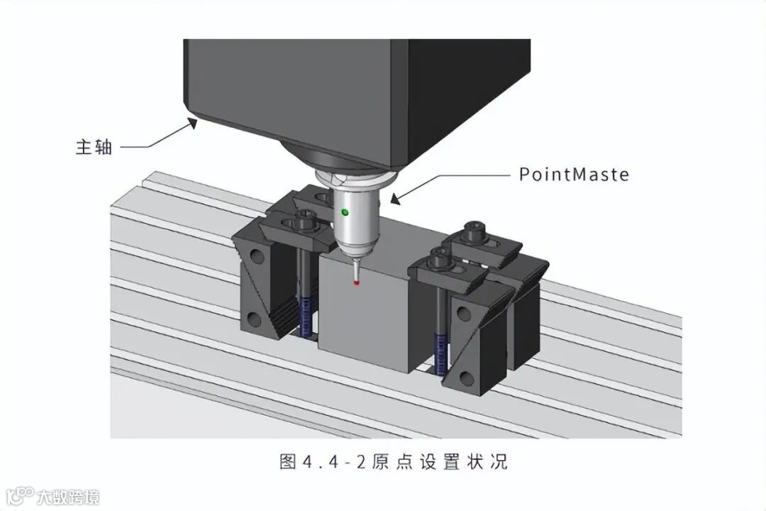 对于像此处的块状工件,中心点通常设置为 X 轴和 Y 轴的原点。设置原点的方法似乎有多种,但典型的方法是使用称为“PointMaster”的工具。
