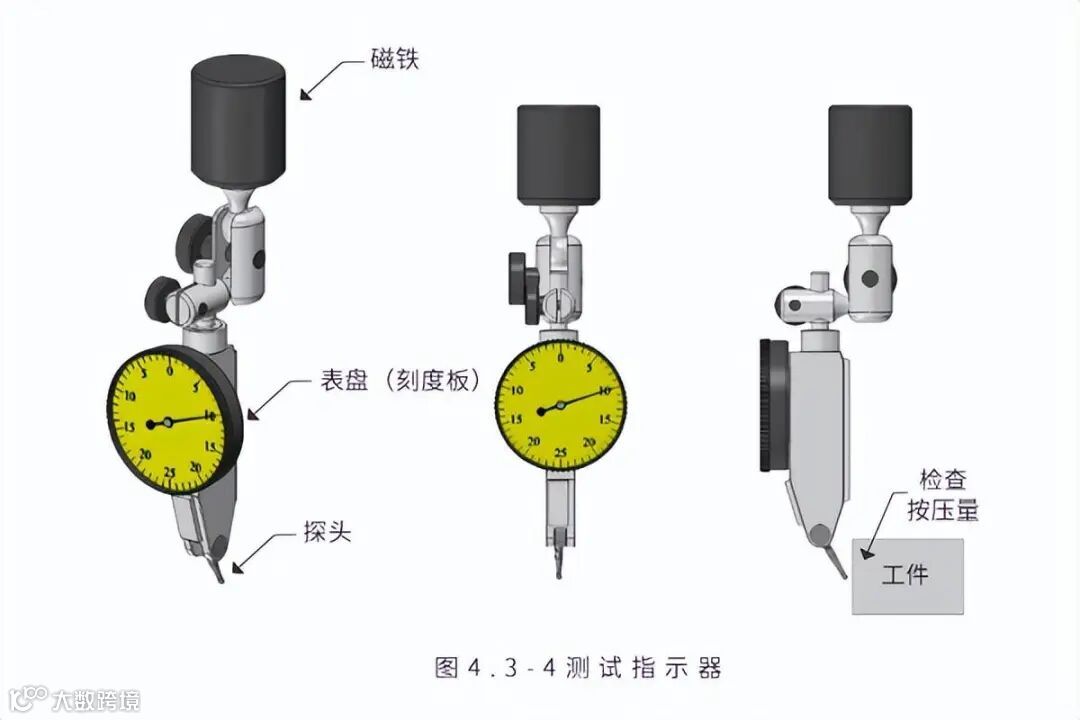 此处常用的是图4.3-4所示的“测试指示器”。它也被称为Pick Gauge(pick)等。测试指示器是一款适用于各种场合的优秀产品。可以通过将称为“探头”的杠杆式顶端部压在对象物上来检测其位移量。