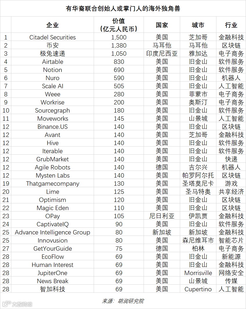 附录2:有华裔联合创始人或掌门人的海外独角兽