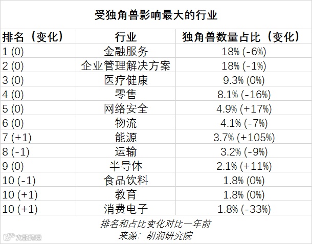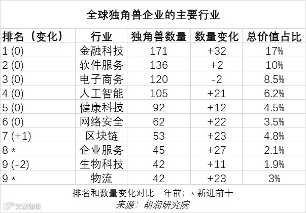 从独角兽数量来看,增长最快的行业是金融科技、企业服务、区块链、物流、网络安全和人工智能。