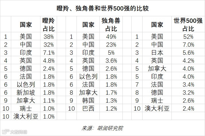 胡润瞪羚企业是成立于2000年之后,价值5亿美元以上,最有可能在三年内成为“独角兽”,即达到10亿美元以上估值的非上市公司。胡润世界500强是世界上最具价值的500家非国有企业。