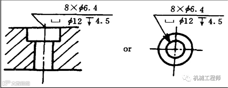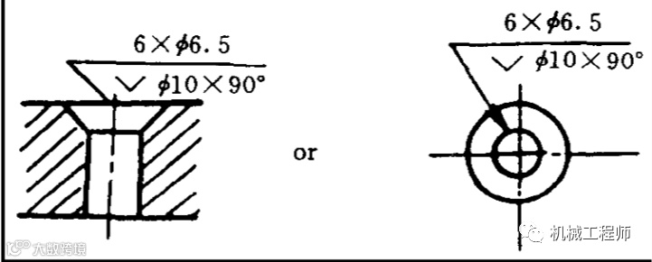 沉头孔标注时需要在横截面上剖开,以表达沉头孔的的位置。