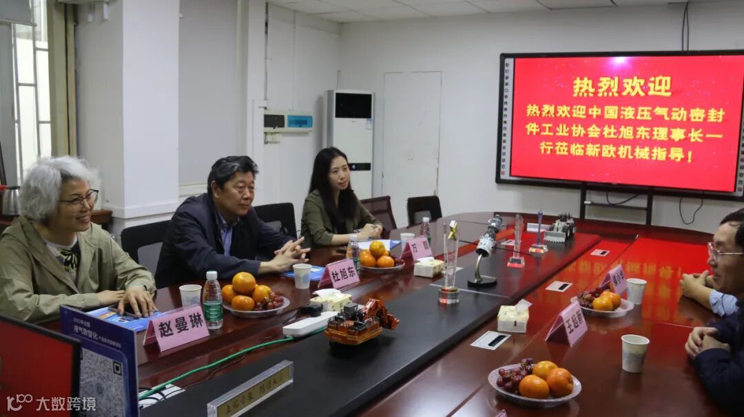 4月10日上午,中国液压气动密封行业协会理事长杜旭东,秘书长赵曼琳,展览主管万磊一行莅临新欧机械指导。新欧机械董事长王起新、常务副总经理侯小华、新液压区块链相关负责人、试验台区块链研发团队主要成员陪同。