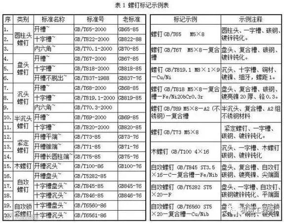 注1:如紧固件的标记中未注明材料及表面处理,则表示紧固件的材料为碳钢镀锌钝化(即镀彩锌)。