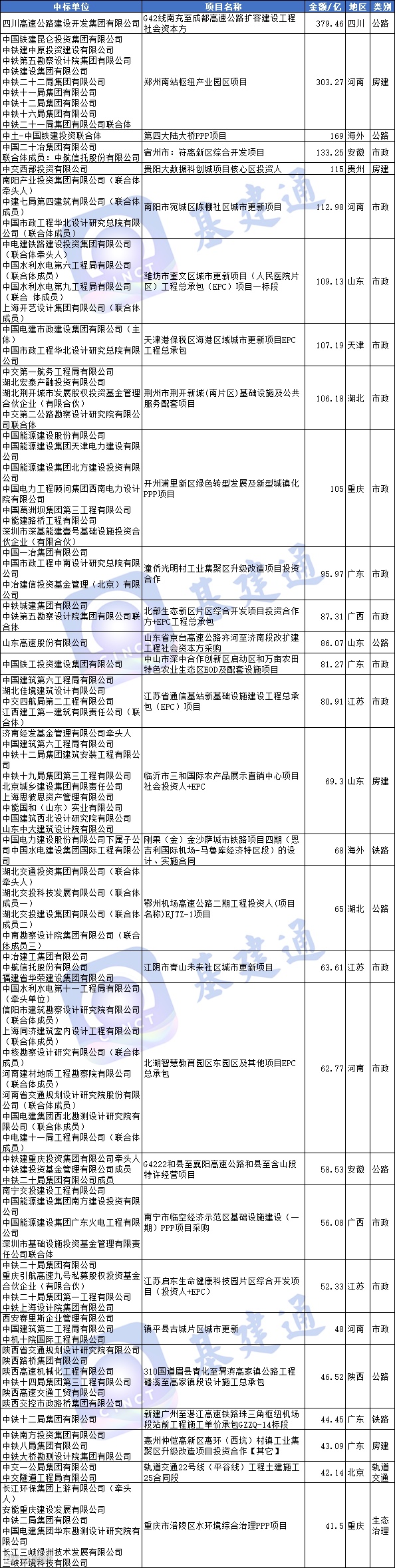 根据统计:本月基建市场单个项目/标段金额超过10亿的约 136 个,超过50亿的约 23 个,其中100亿+项目约 10 个。