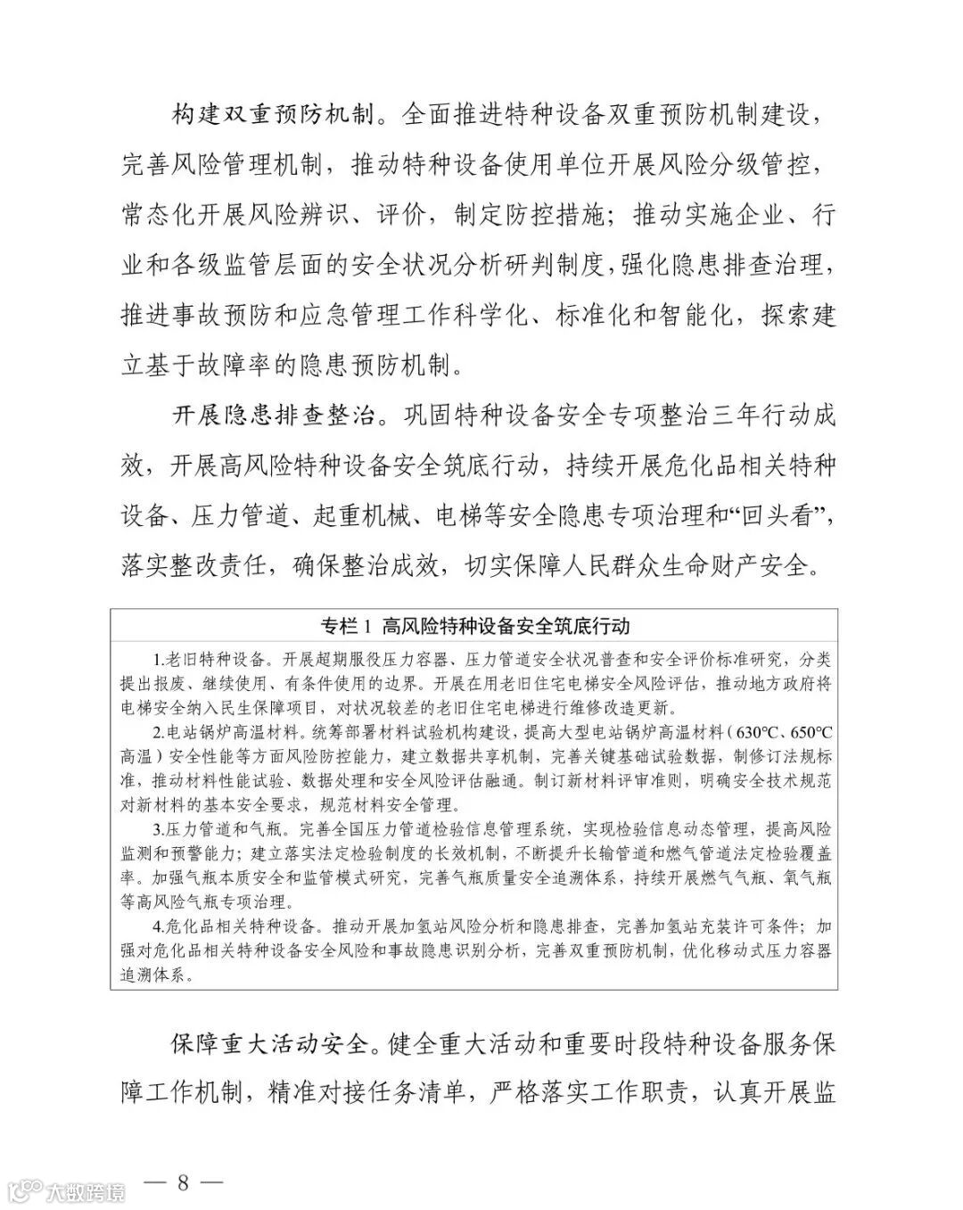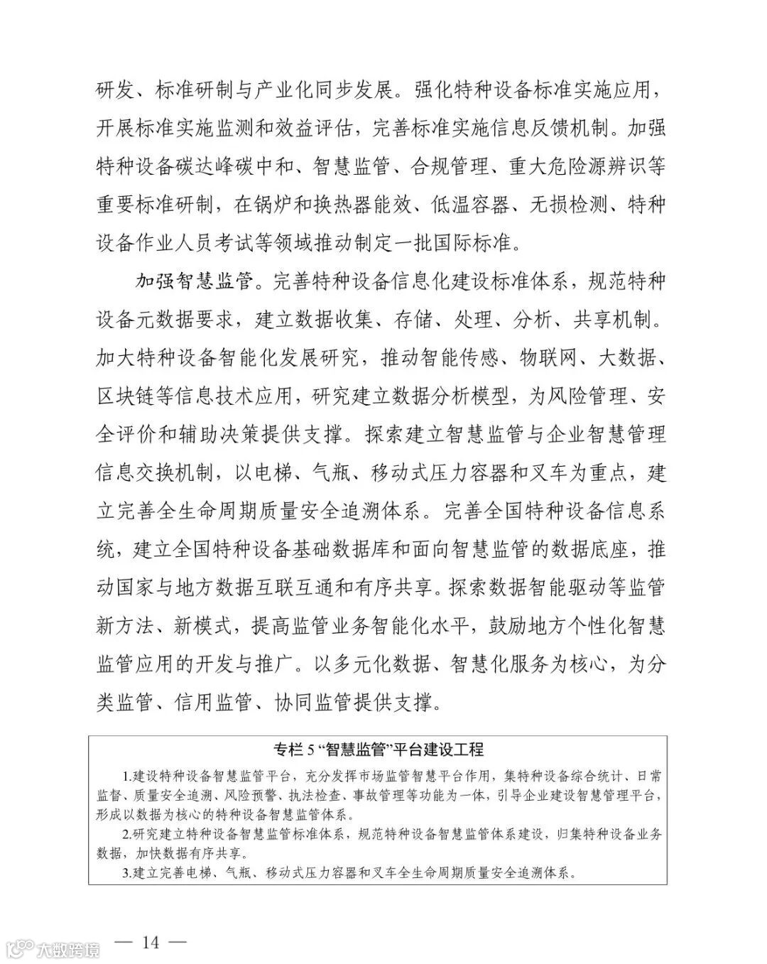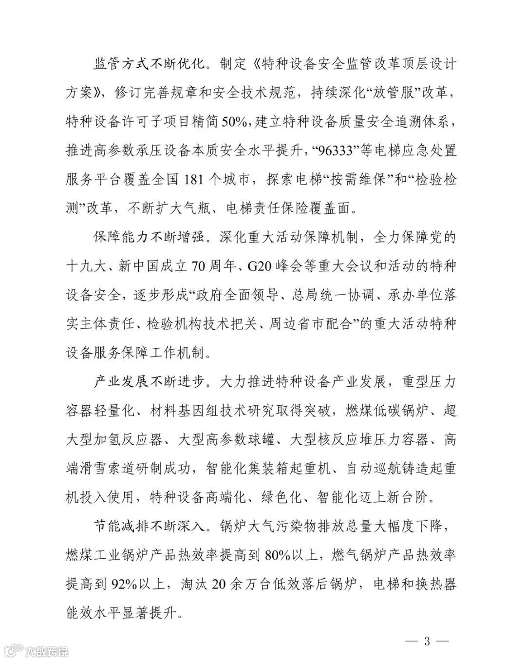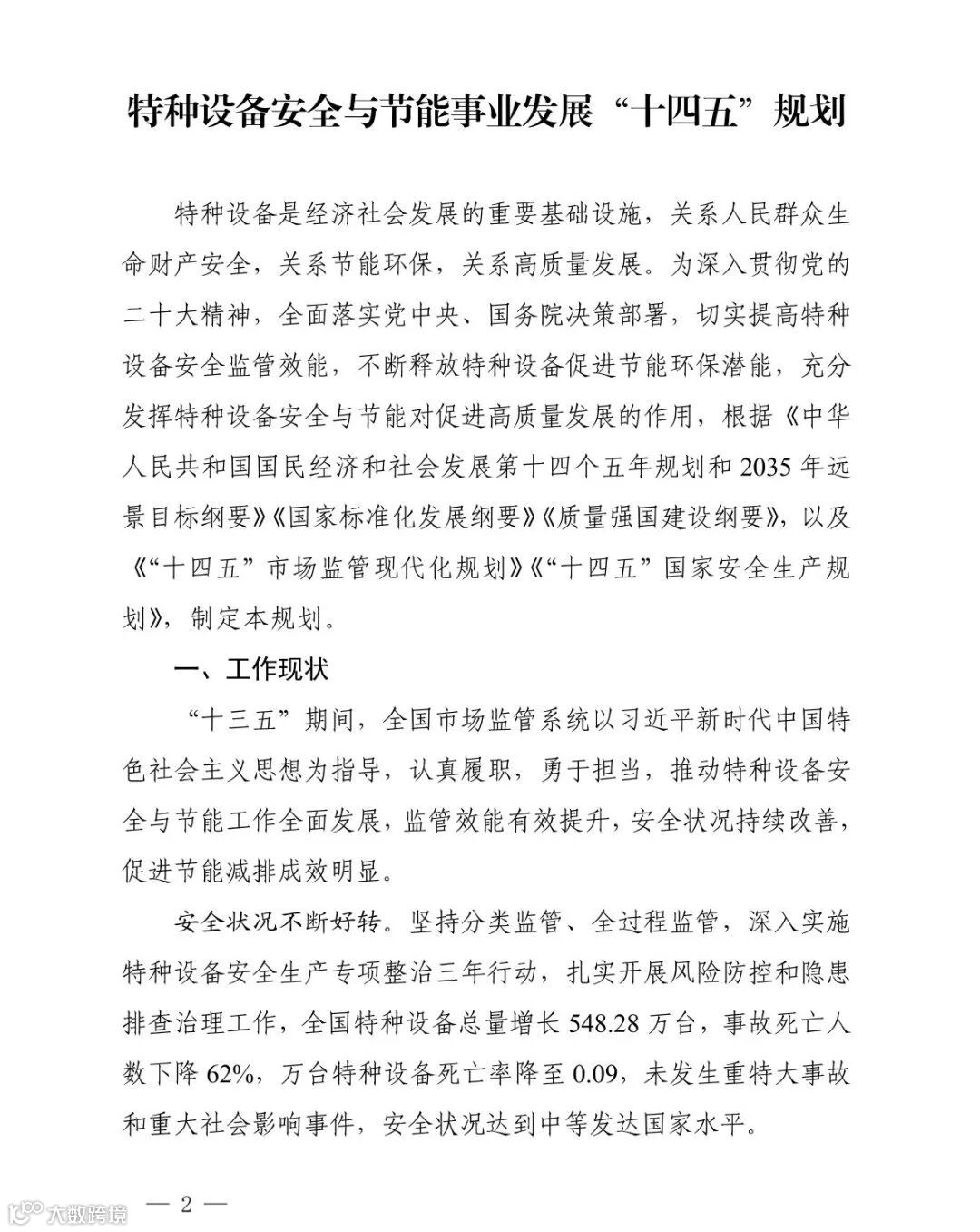 《规划》主要目标提出,培育一批特种设备跨国企业,打造一批有国际影响力的检验检测机构,创建10个以上特种设备产业集聚区,推动特种设备重点产品进出口总额增长5%以上。