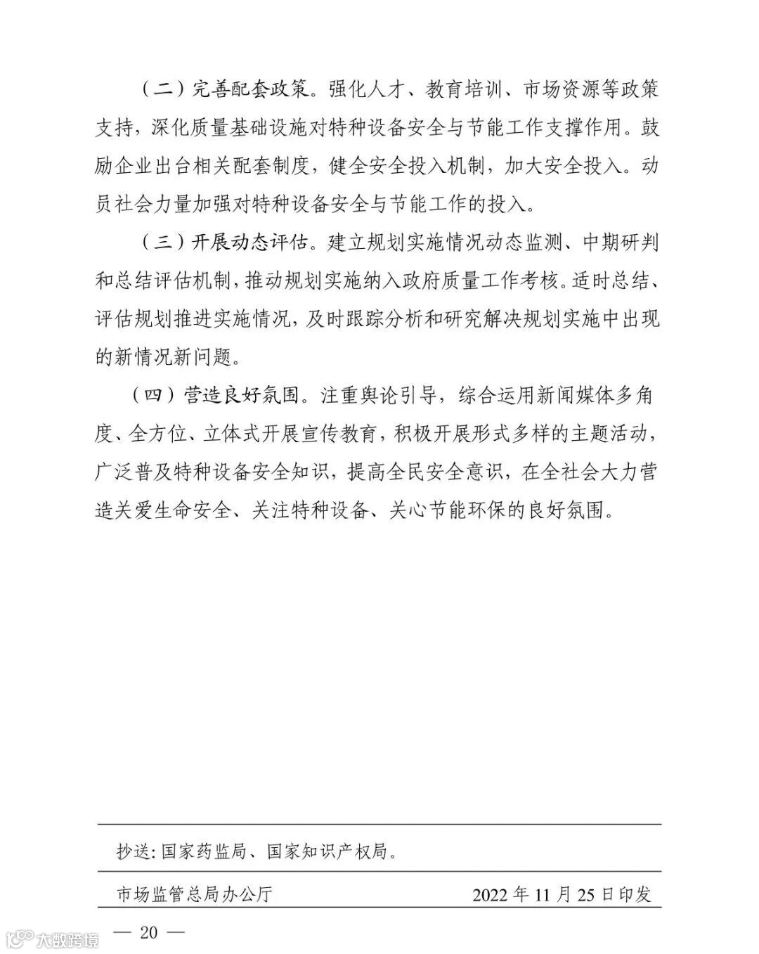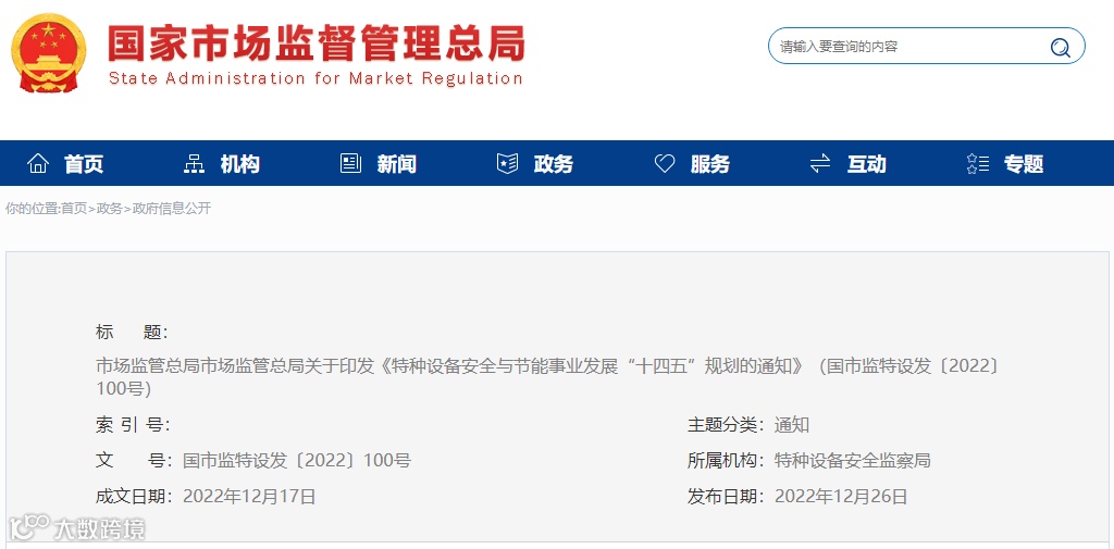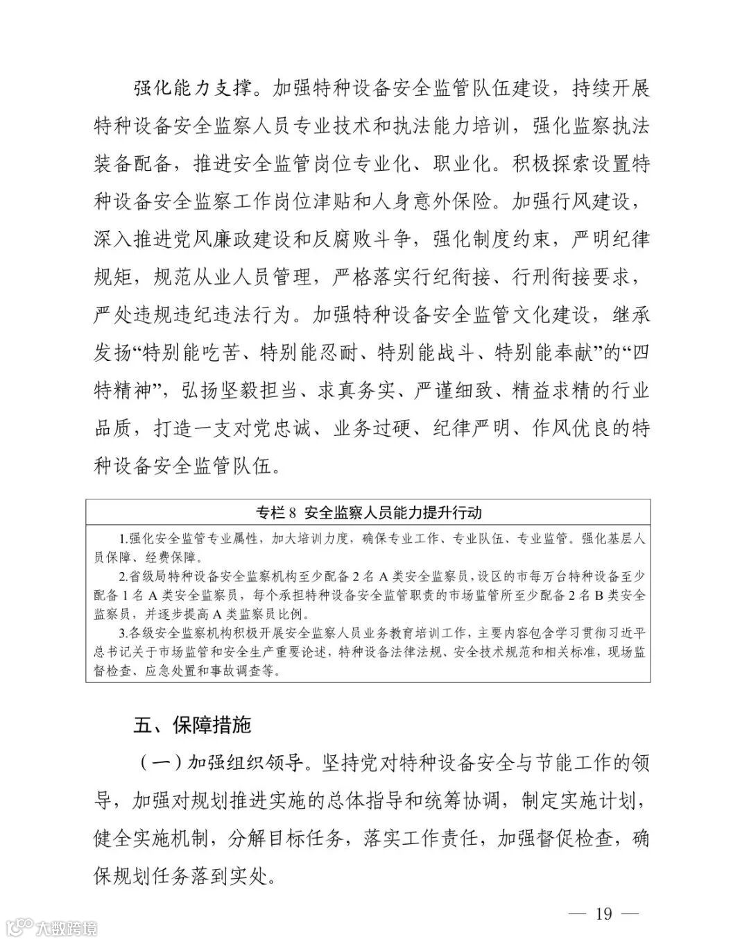 《规划》要求,加强检验检测机构监督检查,提升检验检测机构服务品质,引导检验检测行业健康有序发展。支持检验机构、社会组织和企业开展国际交流合作,促进新技术引进及特种设备产品和检验检测技术服务出口,推动中国特种设备高端产品、成套设备走出去。