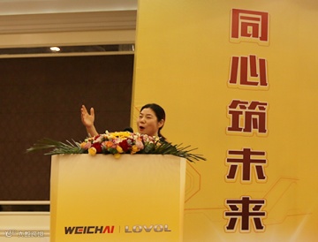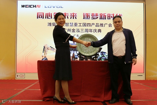 随后,广州市金泓机械设备有限公司总经理刘卫平女士对到场的嘉宾表示热烈的欢迎和真挚的感谢。她表示,广州市金泓机械设备有限公司自进军广州市场以来,以优质、高效、及时、贴心的服务,在行业内独树一帜,赢得客户口碑。接下来,希望把潍柴雷沃的挖掘机、装载机、破碎机进驻广州市场,把更多的潍柴雷沃产品做大、做优、做强。
