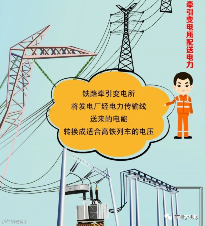 对于高铁而言,电厂发电后通过输电线路送到牵引变电站,再通过接触网将电供给铁路。下面这张图会帮你很好地理解。