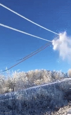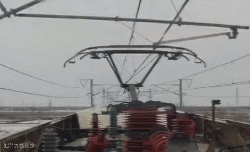 冬天,当接触网上有积雪时,积雪结冰的电线会被刮冰车类似于下面这样“撸”干净: