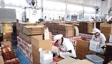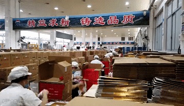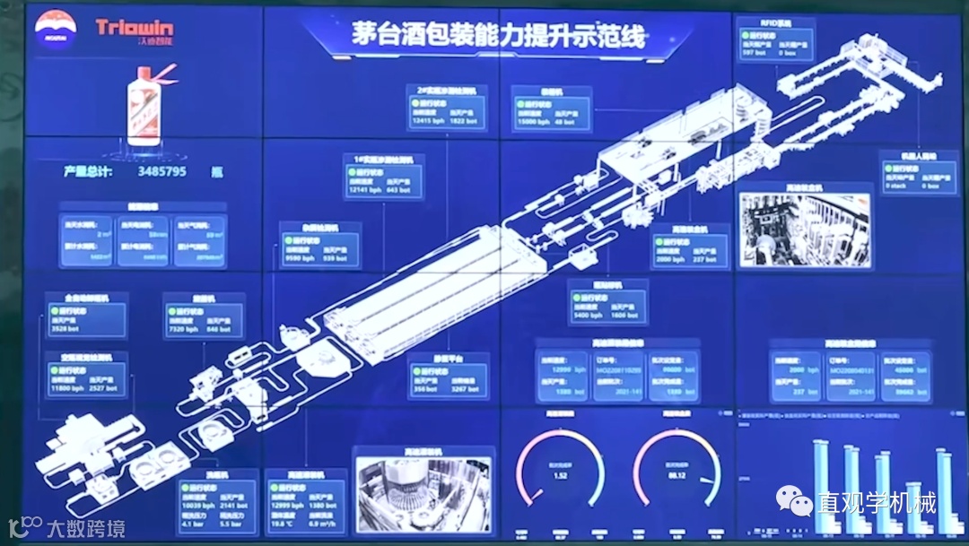 你说你们喝这么多酒干啥呢,姑娘们为了你们这一口是多累啊。还好,新的包装线投产了。这是一条专用于普通飞天茅台酒包装的全自动化生产线,产品入库产能达到每小时 12000 瓶。