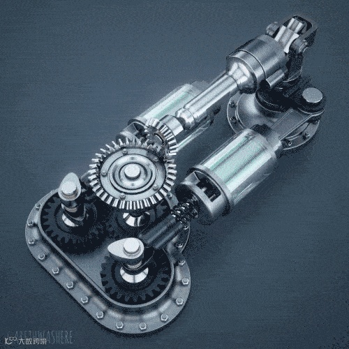 此结构类似于汽车差速器,主要由左右半轴齿轮、两个行星齿轮及齿轮架组成。