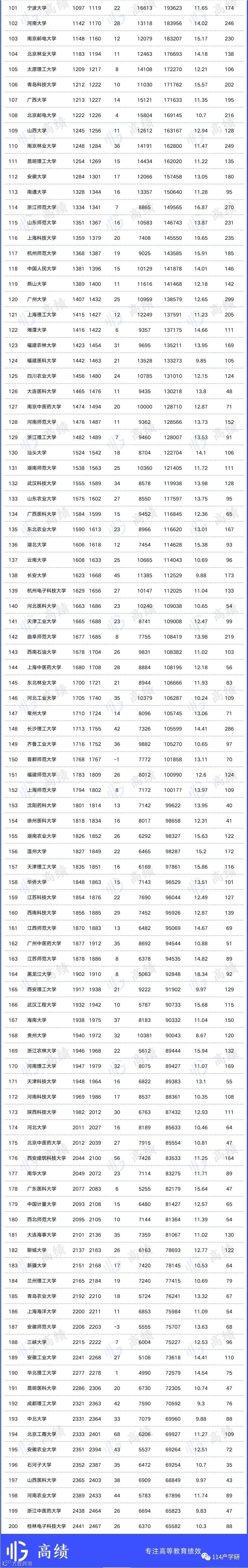 高绩(ID:gidata)整理了中国内地高校200强的排名情况,一起来看看哪些高校取得了进步?