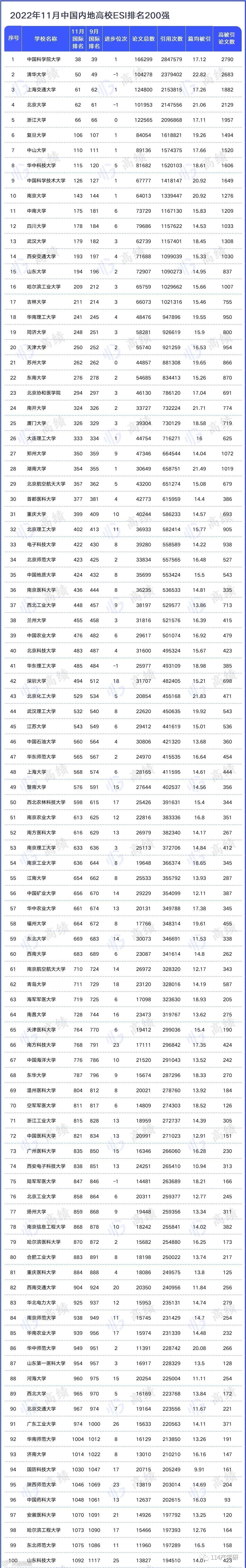 11月10日,科睿唯安(Clarivate Analytics)公布了2022年11月的ESI最新数据。ESI(基本科学指标数据库)是目前世界范围内普遍用以评价高校、学术机构、国家或地区国际学术水平及影响力的重要评价指标工具之一。本次数据覆盖时间范围为2012年1月1日至2022年8月31日。