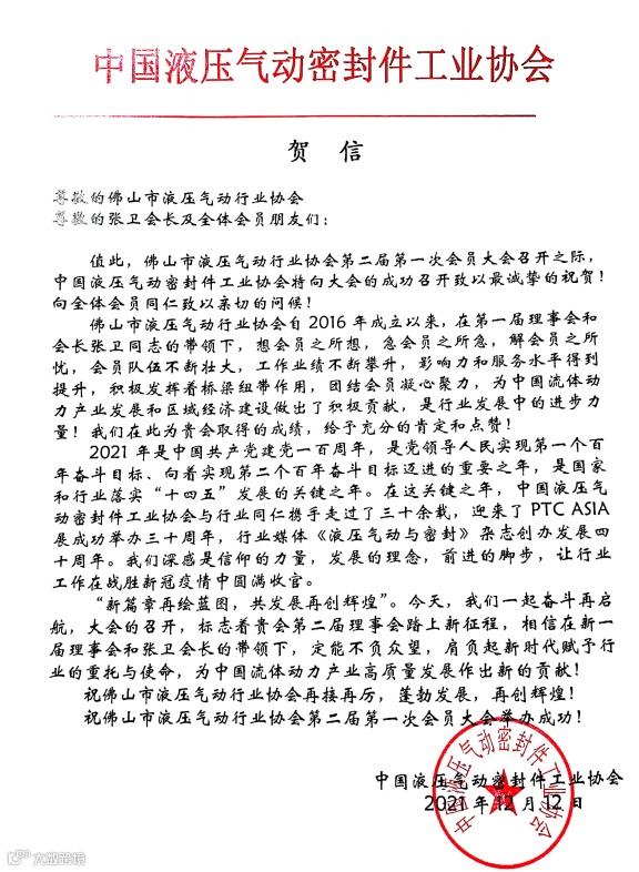 2022年12月1日,佛山市液压气动行业协会在南海假日酒店隆重举行了《新篇章 绘蓝图 共发展 创辉煌》为主题的【佛山市液压气动行业协会第二届第一次会员大会暨成立六周年庆典活动】,本次活动邀请了有关领导、专家学者、行业名企、兄弟商协学会、新闻媒体以及我会全体会员单位出席大会。