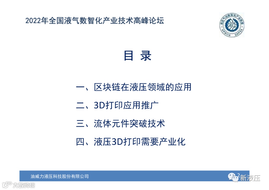 7月3日,2022 年全国液气数智化产业技术高峰论坛在广州举行。大会以“区块链技术在液压领域的应用”为主题,围绕数智液压元件技术创新以及“区块链技术+大数据挖掘”的工程机械应用等热点议题开展研讨分享。