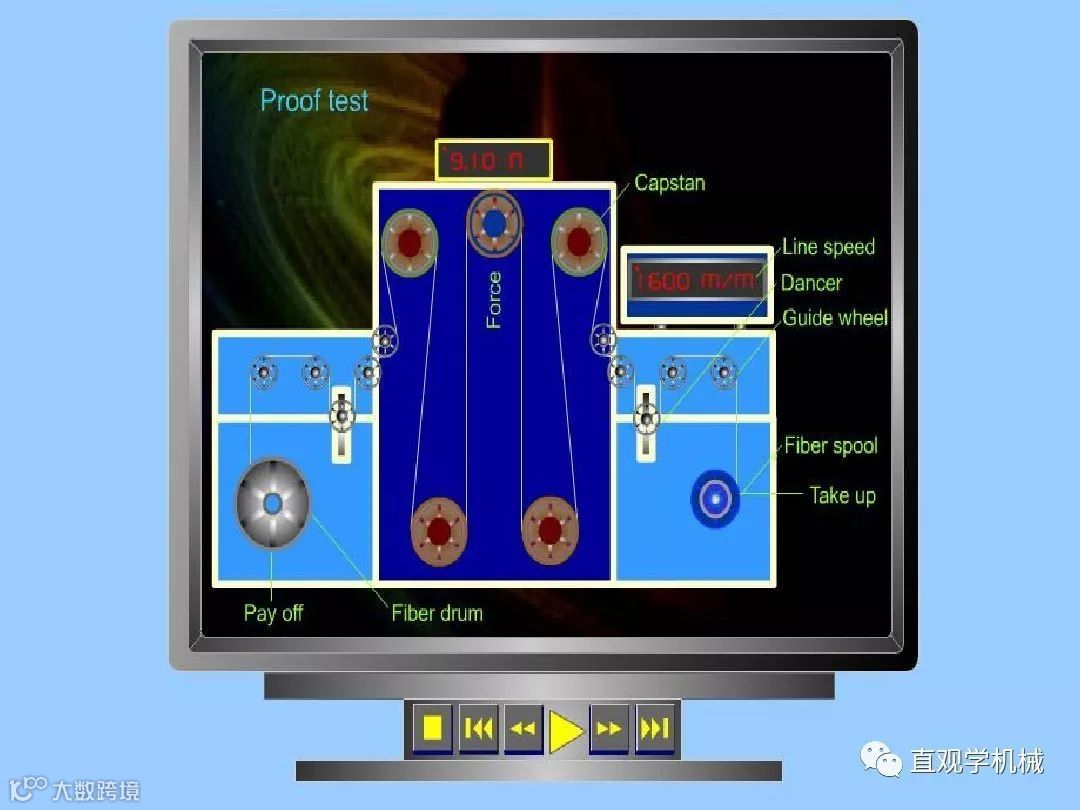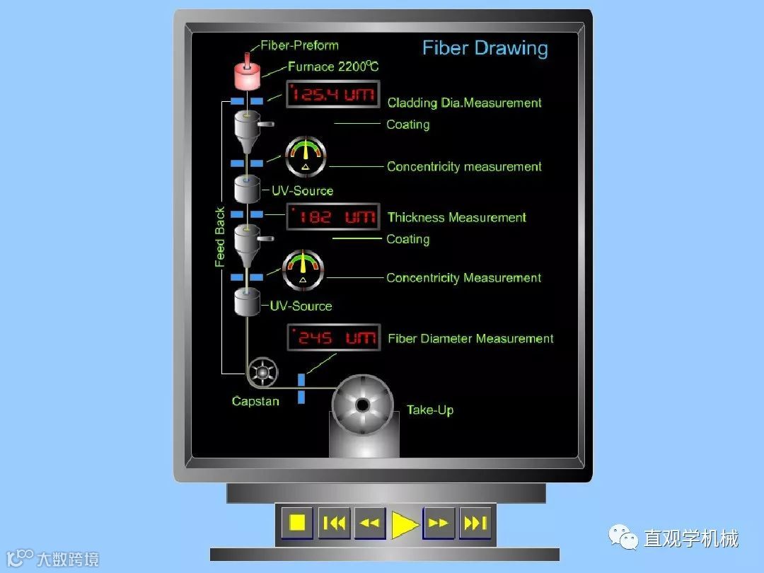 把预制棒放人高温(约2000℃)拉丝炉巾加温软化,拉制成线径很细的玻璃丝,同时在玻璃丝外增加一层高分子材料涂覆层,以便增强玻璃丝的柔韧性和机械强度。