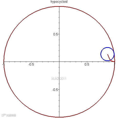 从你这样画图的轨迹中你可以看到,这实际上是一条直线在一个圆上滚动的时候直线上的一个的的运动轨迹。V:swfb520