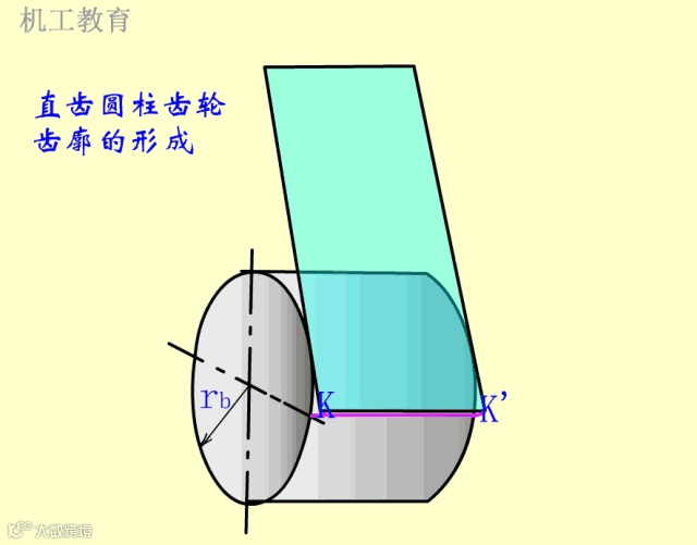 如果你把一条线缠绕在一个圆柱上,线的末端固定在一个笔头上,让笔头牵着线逐渐取开圆柱并画下痕迹,那么这个痕迹就是一个渐开线。
