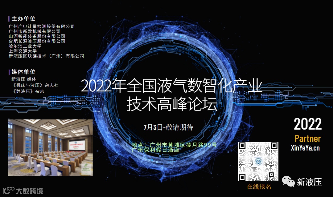 目前,我国的制造业处于高速发展阶段,正经历从制造大国向制造强国的转变。数字液压技术作为高端先进制造业的关键性基础技术,其在国防、冶金、电力、石化、机械制造、工程机械等领域应用广泛,是促进我国高端制造业发展的核心技术之一。2020年-2022年,由广州广电计量检测股份有限公司、广州市新欧机械有限公司联合哈尔滨工业大学、上海交通大学、山河智能装备股份有限公司等实施工信部“面向高端工程机械的数字液压技术创新及试验检测产业技术基础公共服务平台建设”项目,为促进液压技术的交流和学习,将于2022 年 7月3日在广州市黄埔区揽月路99号广州保利假日酒店举办“2022 年全国液气数智化产业技术高峰论坛”,会议将主要围绕政府招商、企业与企业合作、企业与高校合作,区块链共享服务平台入驻,新产销供应链的液压产业互联网:新液压商城入驻、检验检测数据共享服务平台入驻、全国液压实验室共享服务平台入驻等,展开项目合作。诚邀您参加,共同研讨液压智能化的现状和发展趋势。