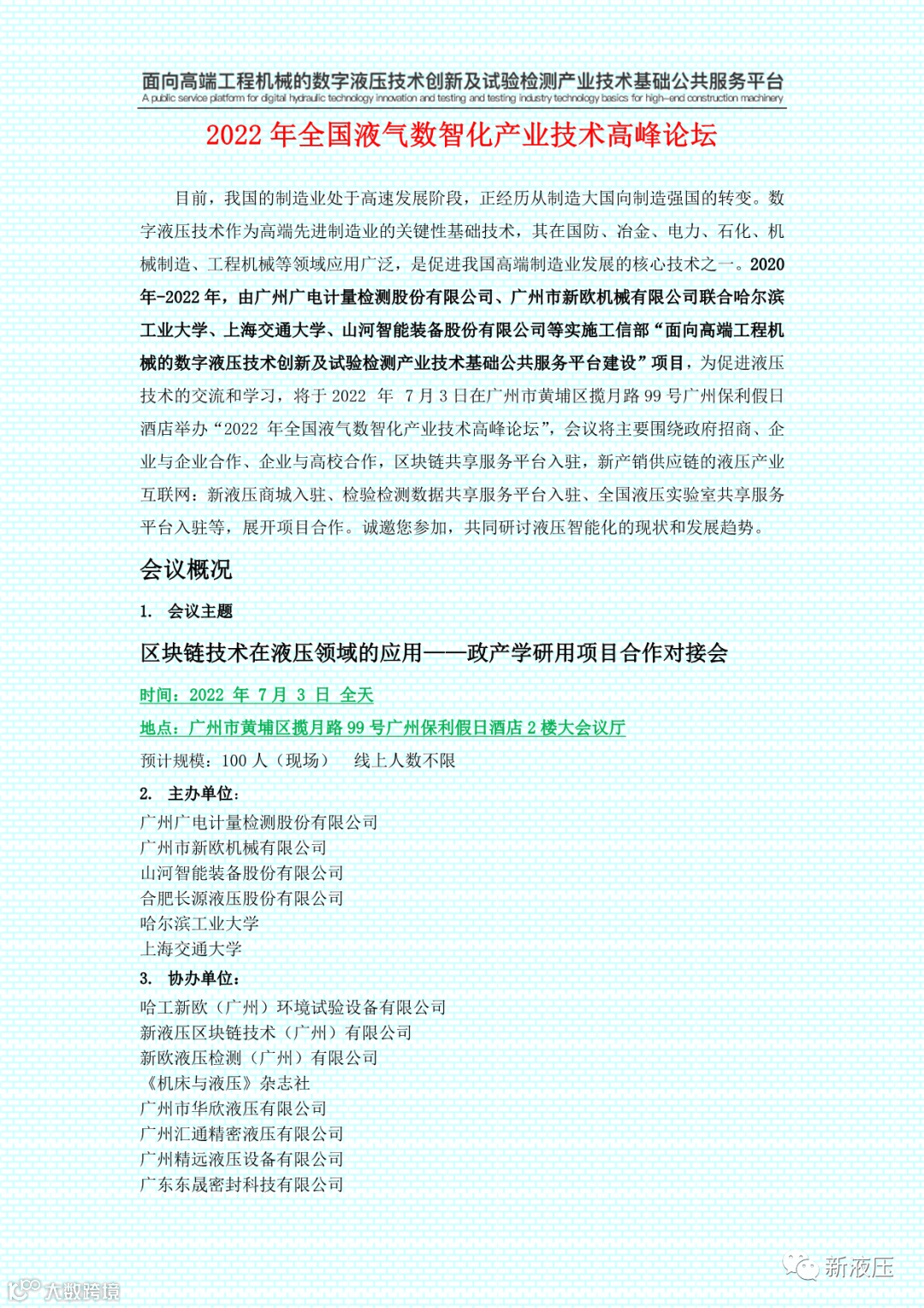 区块链技术在液压领域的应用——政产学研用项目合作对接会