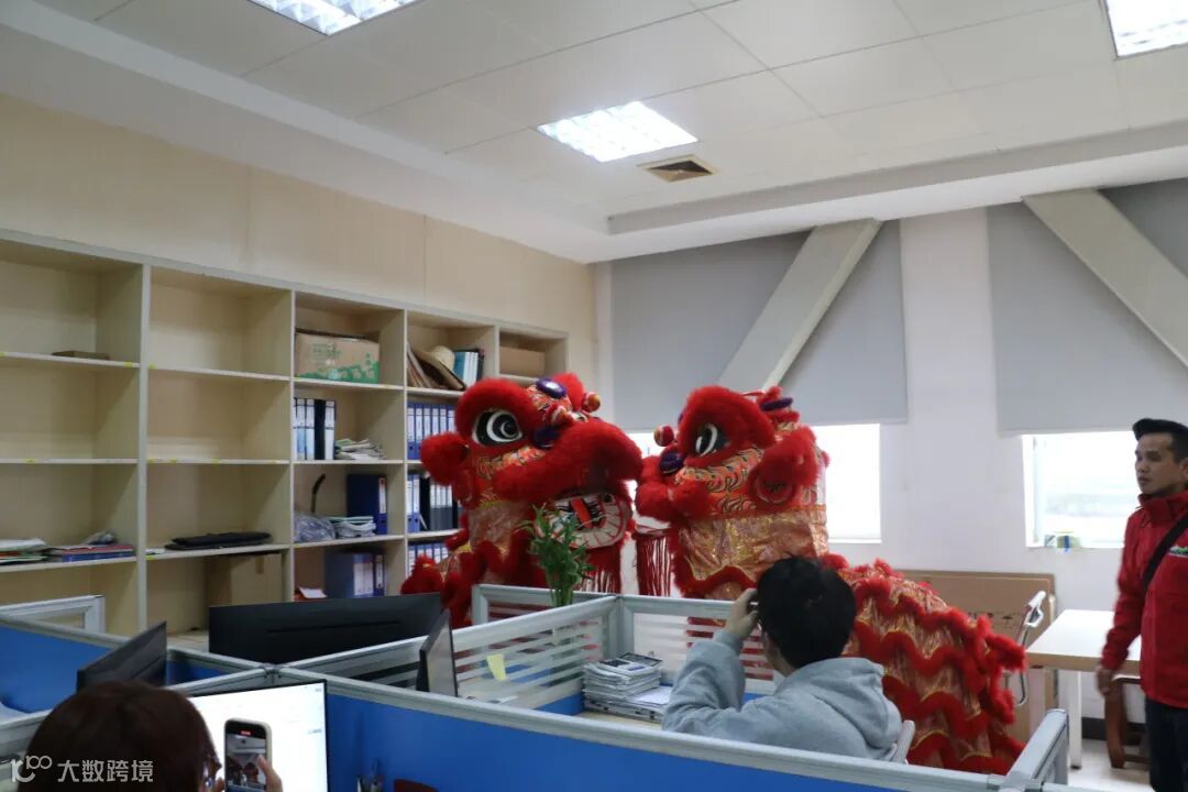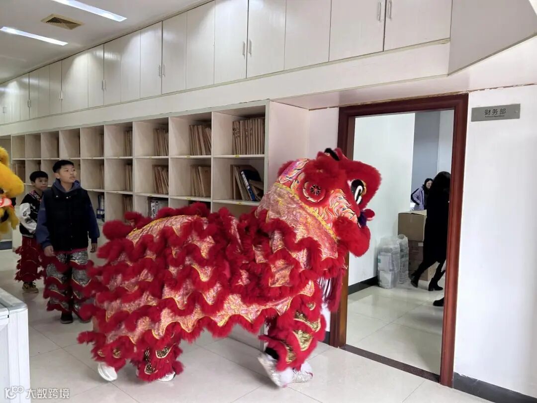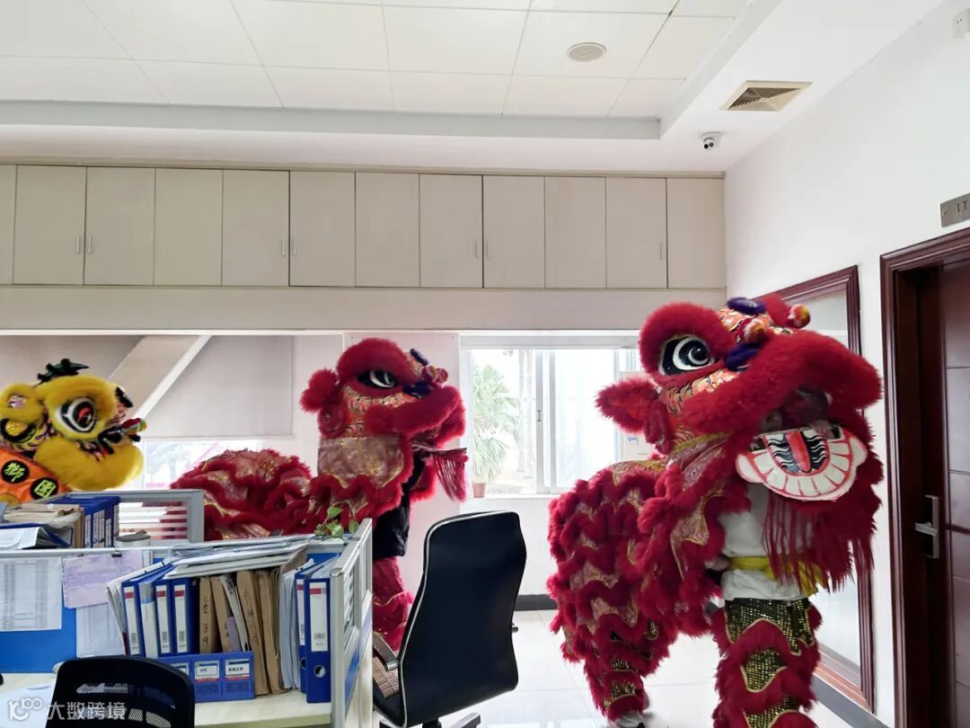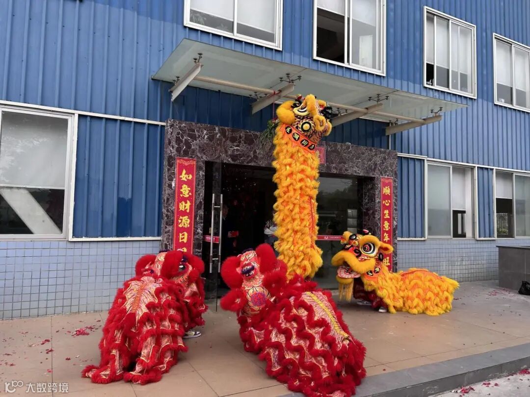 在锣鼓震震,鞭炮齐鸣的欢乐气氛中,身披绚丽彩装的醒狮欢腾跳跃,穿梭于整个厂区巡游拜年,热闹互动,将喜气与祝福传遍公司的每一个角落。