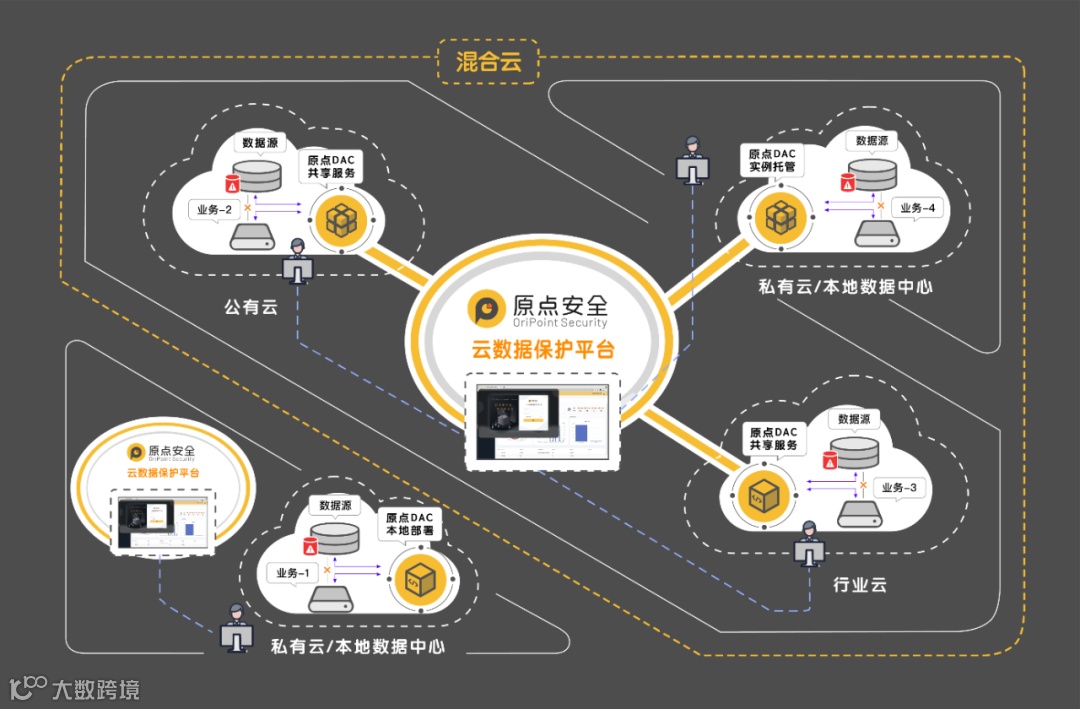 共享服务:如果您的数据源部署在公有云/行业云上的私有VPC网络内部,或者部署在企业本地数据中心的私有云上,原点支持将DAC实例部署进您的私有VPC或本地私有云, 安全管控中心仍采用SaaS模型,以节省您的IT和维护成本。
