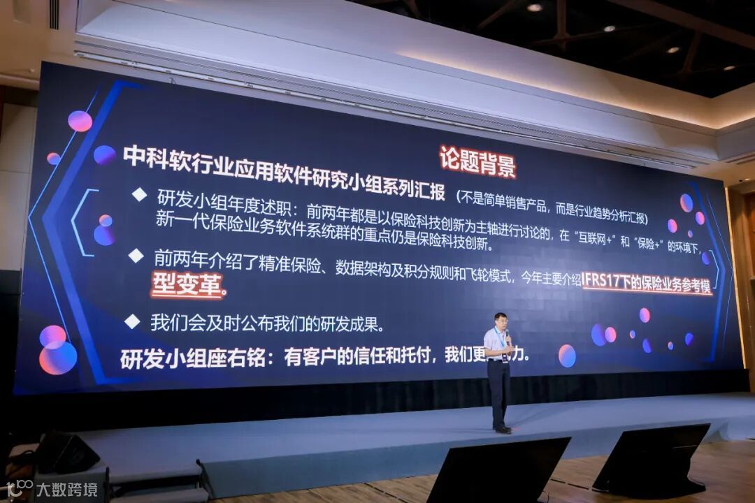 大家上午好!欢迎各位保险客户和合作伙伴,每年我们都要做一个汇报工作,今年我们要汇报的主题是"IFRS17下的保险业务参考模型变革",随着IFRS17会计准则在国内保险行业的推进,将会引起保险公司业务核算、管理和发展的一系列变革,客户和合作伙伴对这个问题很关注,中科软作为长期深耕保险IT行业的企业,过去几年我们针对保险IT的研发方向给出了一些建议,例如精准保险、数据架构及积分规则和飞轮模式等等,我们的汇报不是广告,而是向客户汇报我们对于行业最新发展趋势和关注问题的看法。今年也是如此,我将结合行业最关心的IFRS17(简称“I17”)给大家做一些研发方面的介绍,这样大家可以从系统角度和业务原理角度有一个更充分的认识。