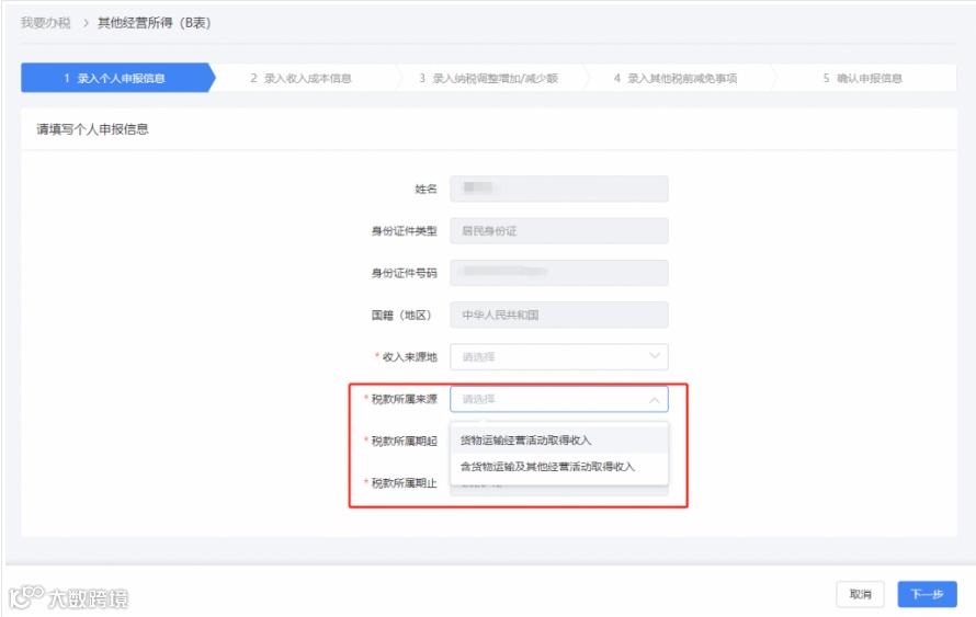 其他个人从事生产、经营活动取得经营所得的预缴纳税申报。