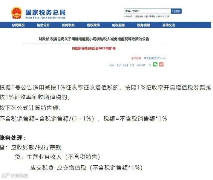 小规模纳税人: