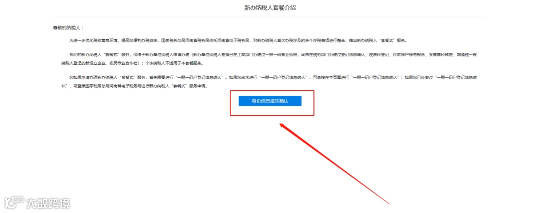 3.点击【身份信息报告确认】进入登记信息确认界面,输入统一社会信用代码、法人身份证号,点击【进行登记信息确认】。