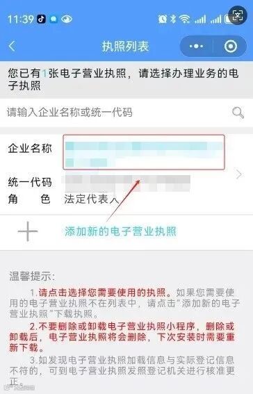 微信或者支付宝搜索"电子营业执照”点击进入。