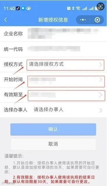 选择“授权方式”,“开始时间”,“有效期至”。