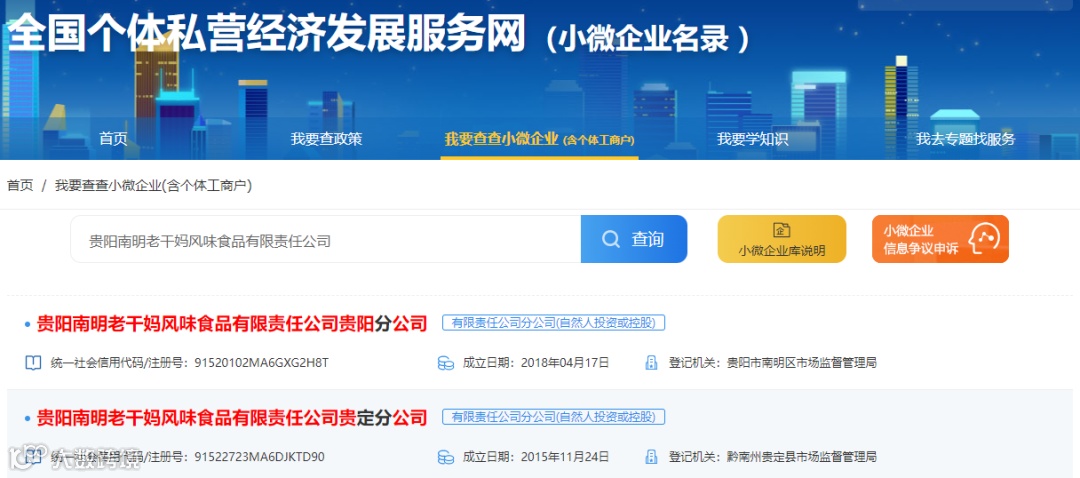 曾经有段时间,老干妈是小微企业的事情刷爆了财税人的朋友圈,小编在国家市场管理监督总局官网上查了一下,还真就是小微企业!