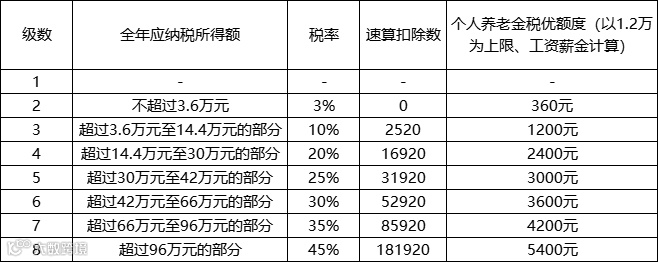 1、A先生年收入25万,收入类型为工资薪金,应纳税所得额12万,存入个人养老金账户1.2万元可节税1200元