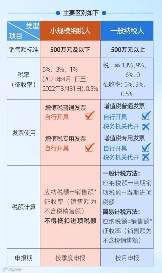 小规模纳税人与一般纳税人的区别