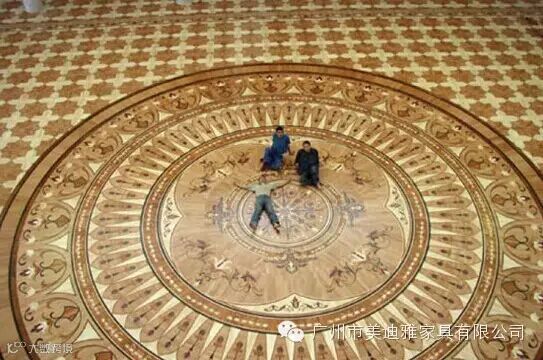 拼花地板是一种以不同色彩和树种的木皮拼接,在木质上呈现具体或者抽象图案,极具有装饰感的一类木地板材料,利用不同花色和木材的纹理来打造多变的图案的意象,拼花地板基本需要采用纯手工拼贴,工艺复杂且人力成本高,所以在国内一直没有很好地普及。