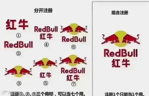 同时如中文在上、图形在左、英文在右这样的组合商标注册后,实际使用只能按这样位置排版不能改变。但各元素分开注册后,合并使用时就可以随意组合了。