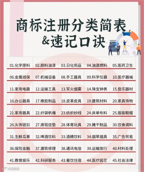 7、按商标局分类书,商标查询和注册是分45个类别(行业)的。