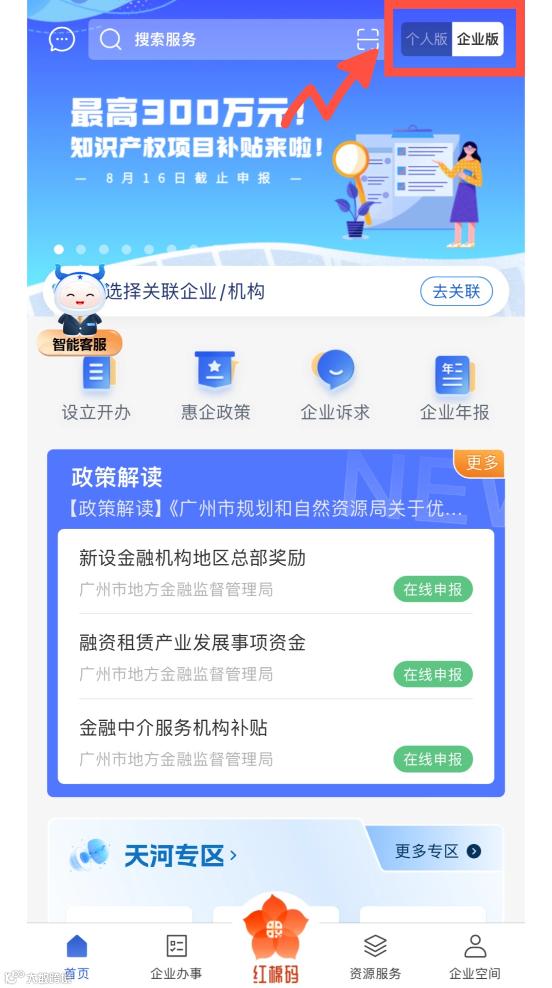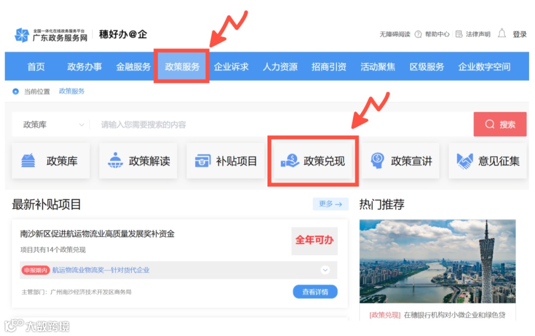 登录穗好办@企平台→点击【政策服务】→点击【政策兑现】;