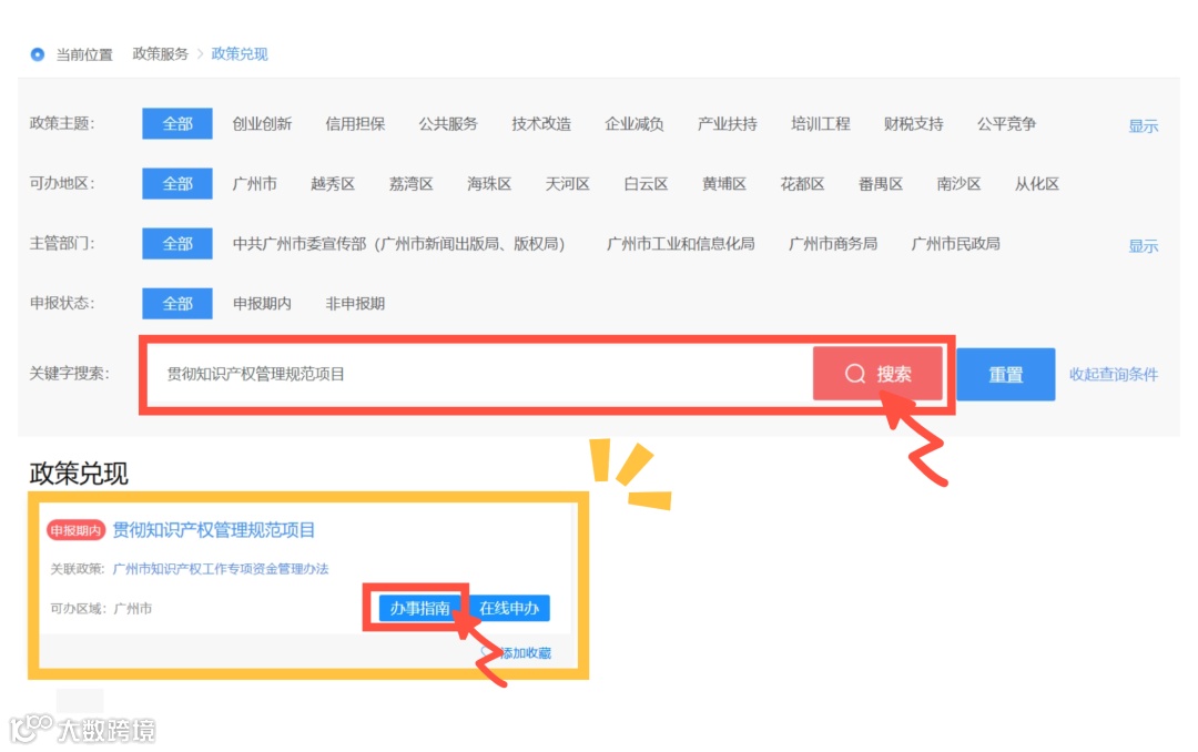 带齐相关材料,前往广州市政务服务中心5楼政策兑现综合受理窗口办理。