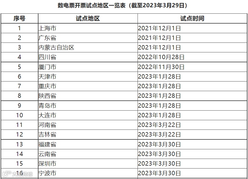 近日,福建省、云南省、深圳市、宁波市税务局发布公告,自3月30日起,在所辖区域的部分纳税人中开展数电票试点,至此,全国数电票开票试点省份(含计划单列市)已达到16个。受票范围为:全国。