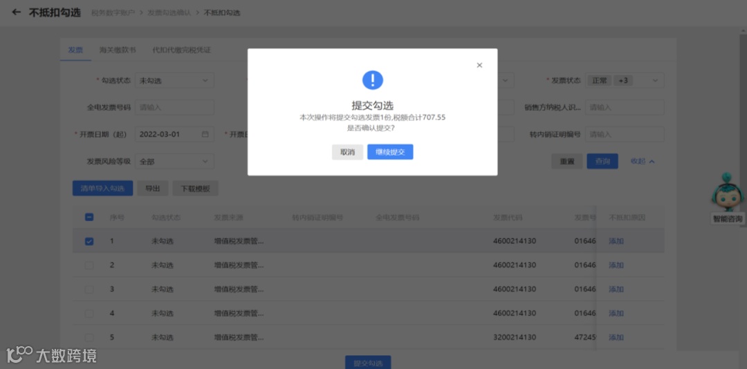 四、提交勾选发票