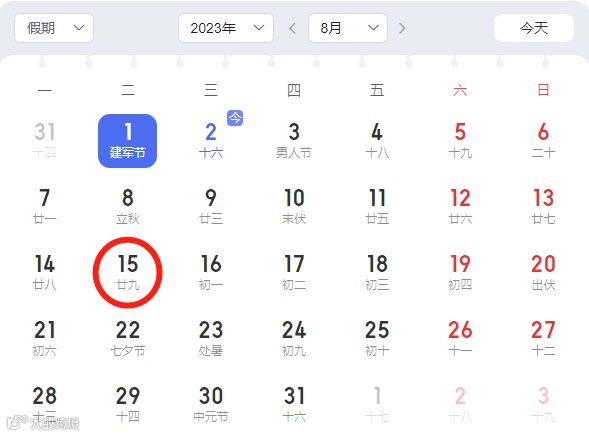 定了!8月征期截至15日